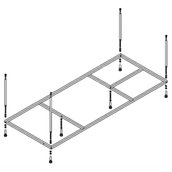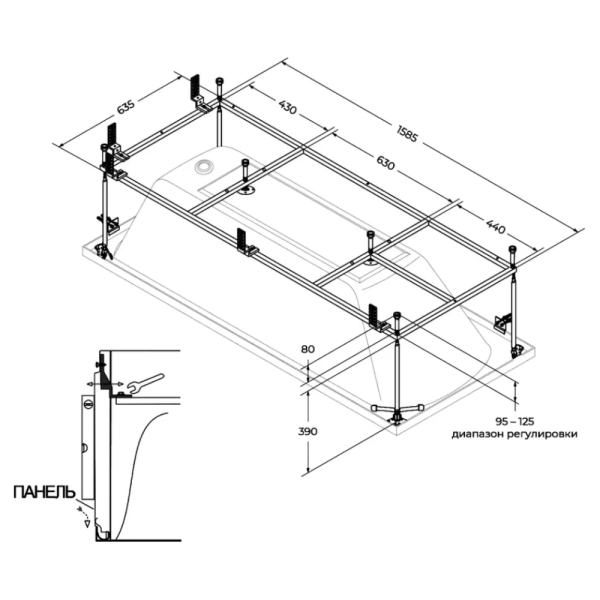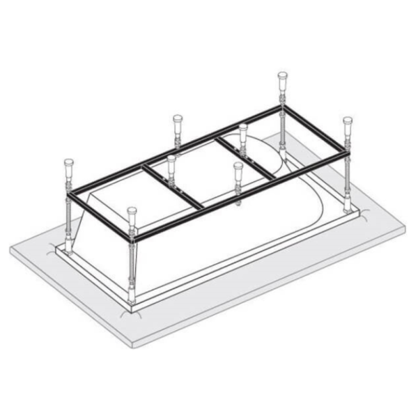 - Каркас делает процесс установки ванны проще и быстрее. С его помощью ванну можно точно установить на нужной высоте, что особенно важно на неровных полах.