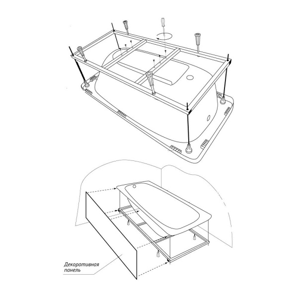 - Простота монтажа: Каркас значительно упрощает процесс установки ванны, позволяя установить ее ровно и надежно, даже на неровном полу.