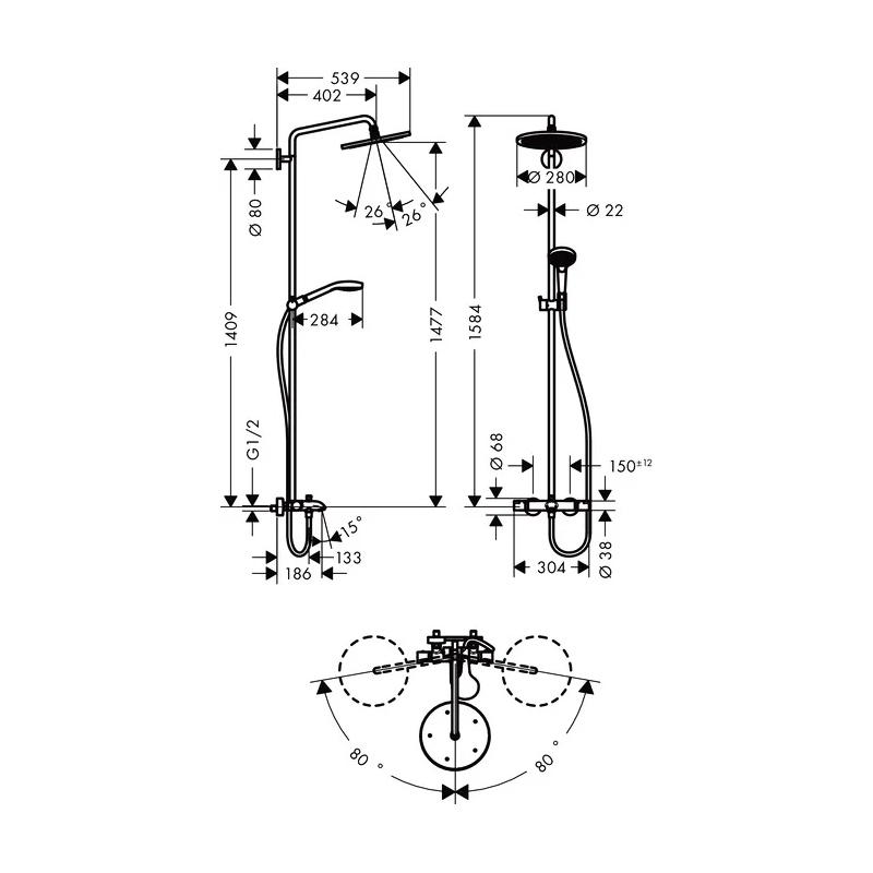 Душевая стойка Hansgrohe Croma Select S 26792000 хром