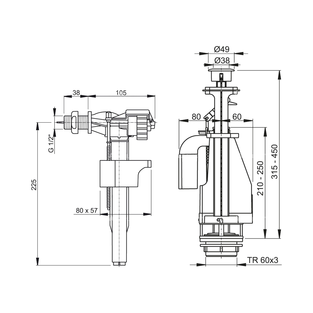 Арматура для унитаза 1/2 двойной смыв металл Alcaplast SA08K