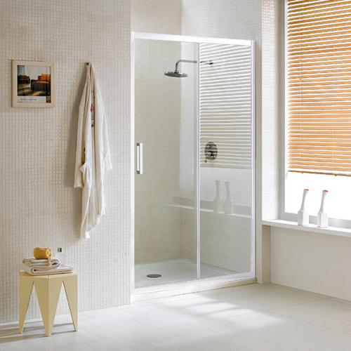 Душевая дверь в нишу AVS Квант 140 профиль белый глянец, стекло прозрачное