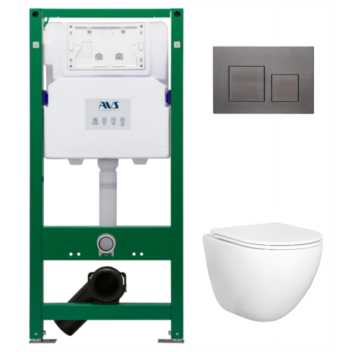 Комплект AVS 3в1: Инсталляция для унитаза 809-0006-7732C + Унитаз подвесной 801-0045-P-T2-GW + Клавиша смыва 809-0013-GM оружейная сталь, квадратные кнопки