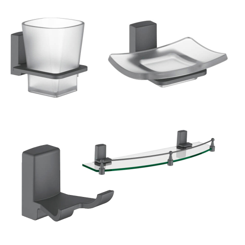 Набор Accoona 125AT графит Стакан+Мыльница+Крючок двойной+Полка