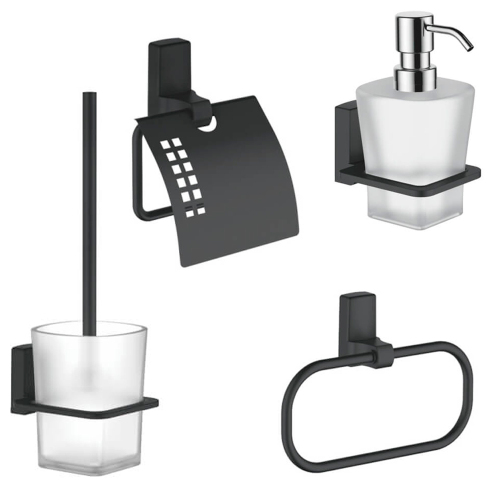 Набор Accoona 125F черный Ершик+Дозатор+Бумагодержатель закрытый+Полотенцедержатель-кольцо