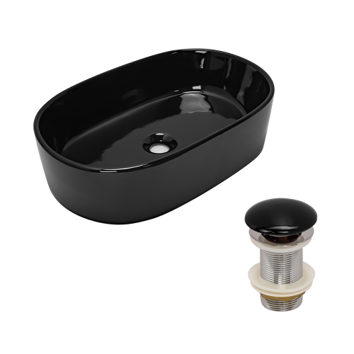 Раковина AVS 50x39 черная глянцевая с донным клапаном