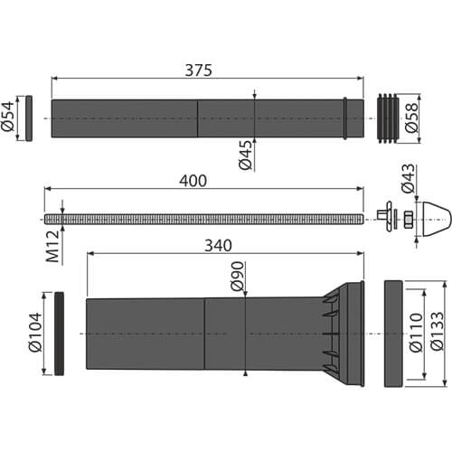 /Удлинительный комплект для инсталляций Alcaplast M9000