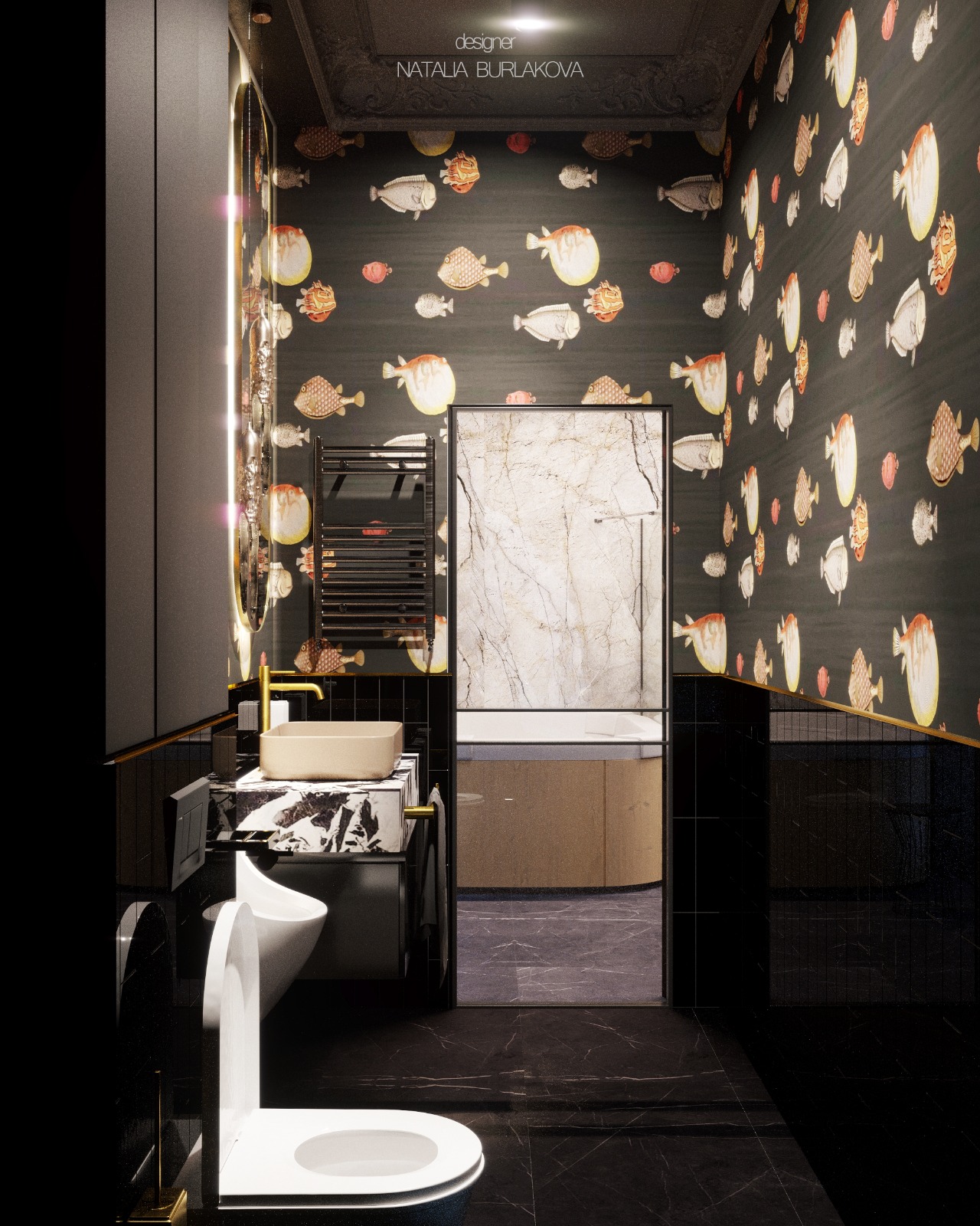 Дизайн туалетной комнаты в спа-зоне на 1-м этаже 3-х этажного частного дома