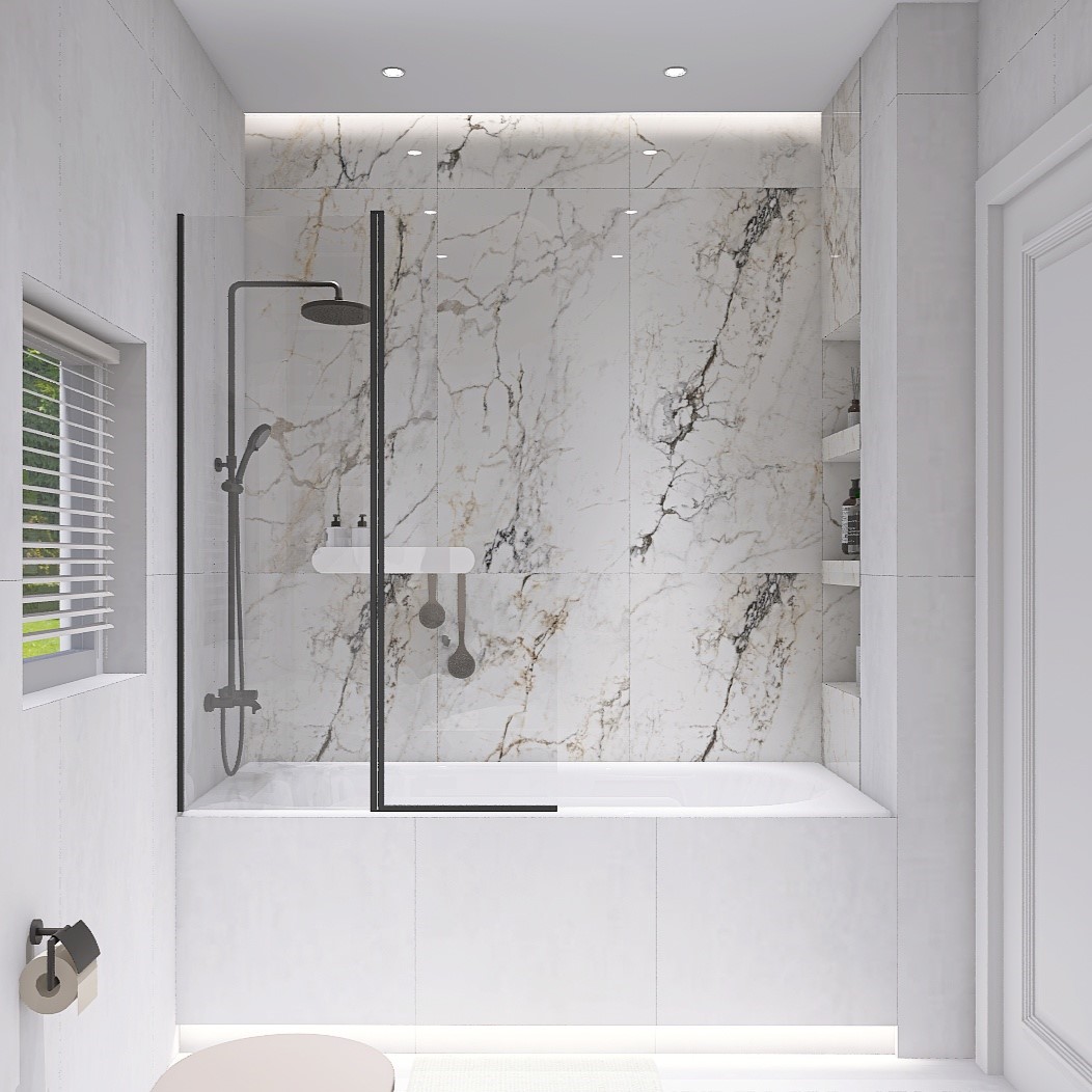 Санузел «Белый шёлк» - воплощение спокойствия и изысканности. Нежные белые тона плитки и натуральный мрамор с тонкими прожилками создают ощущение лёгкости и утончённости. Каждая деталь, от освещения до акцентов в фурнитуре, подчёркивает минимализм и элегантность. Проект доказывает: простота и гармония рождают совершенство.