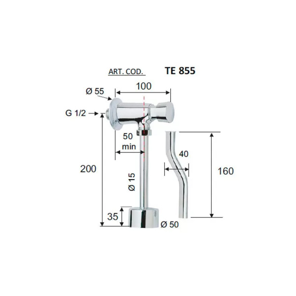 52CR815LMKM Ursula Сливной клапан для писсуара,хром
