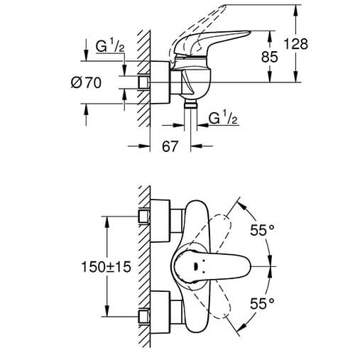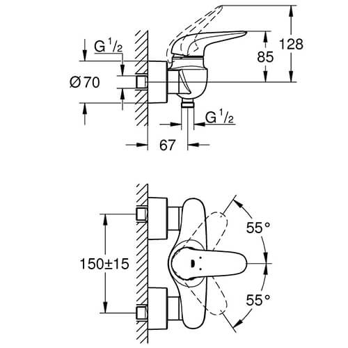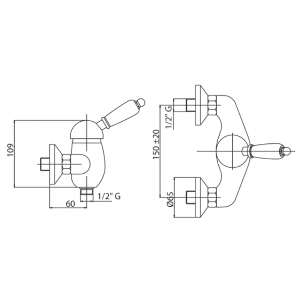 Классический вариант с двумя ручками для регулировки горячей и холодной воды. Эти модели популярны в традиционных интерьерах и придают ванной комнате стильный, винтажный вид. - Термостатические смесители для душа