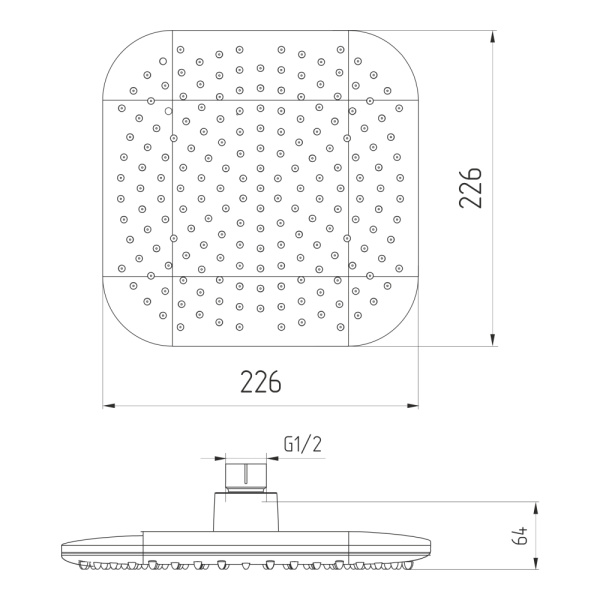 Верхние души могут иметь как круглую, так и квадратную форму. Круглый душ подходит для тех, кто предпочитает более традиционные и плавные линии, тогда как квадратный верхний душ чаще выбирают для современных интерьеров с четкими геометрическими формами. - С регулируемым углом наклона